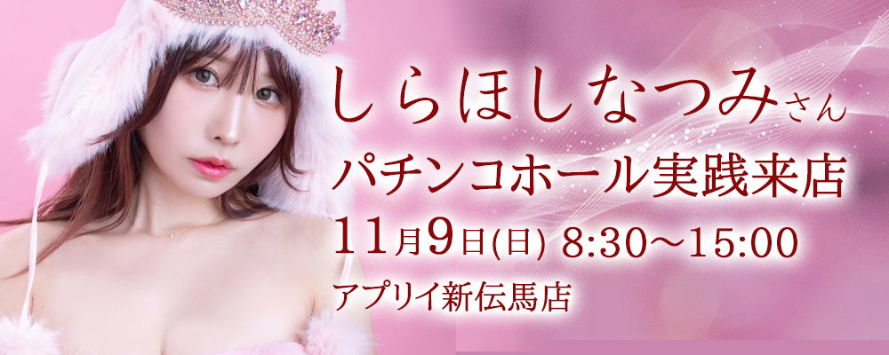 11月9日(日)しらほしなつみ さん アプリイ新伝馬店 実践来店!【静岡】